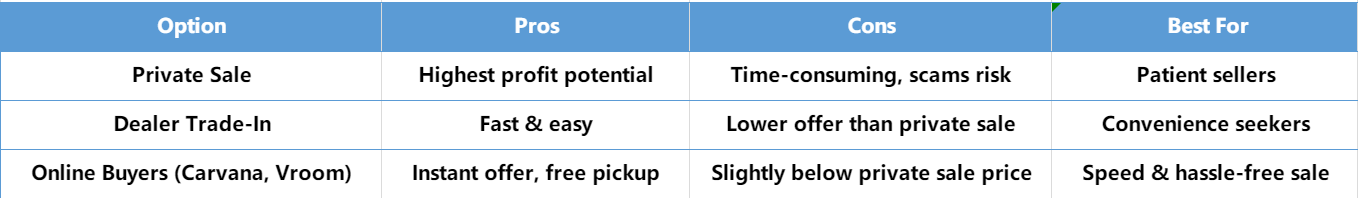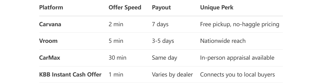 🔹 Carvana/Vroom – Instant cash offers if you want to sell fast