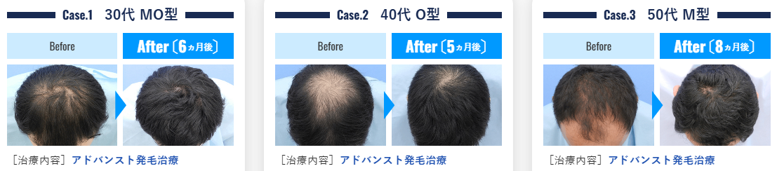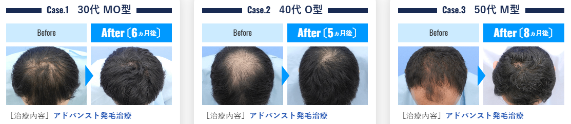 また、発毛する量についても個人差があります。当クリニックで治療を受けた患者様の症例を参考にご覧ください。