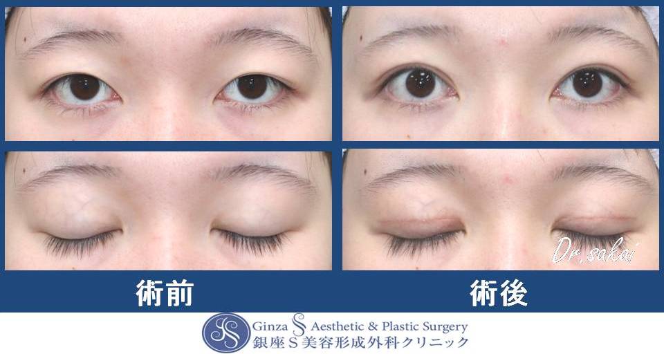 [Before] 一重まぶた → [After] 自然な平行二重(銀座美容外科)