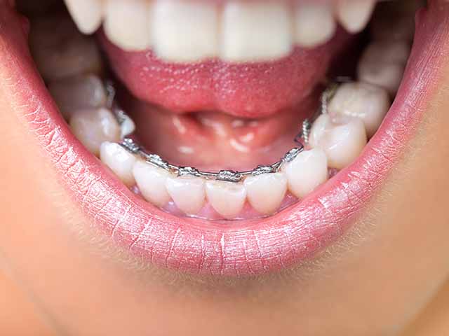 歯の裏側(舌側)に装置を付け、ワイヤーで歯を動かす方法です。