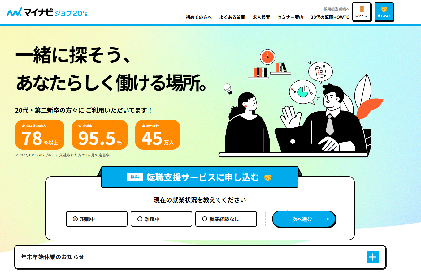 | マイナビジョブ20’s | 20代の転職に特化したサイト |