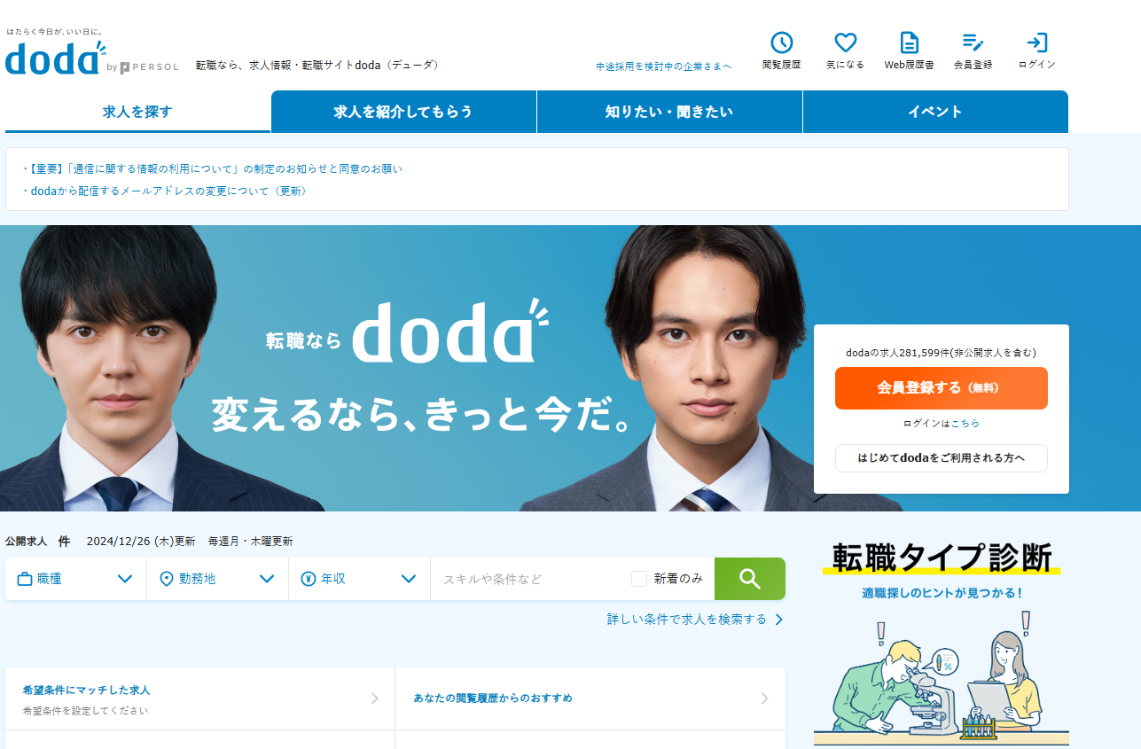 | doda | 幅広い業界・業種の求人を扱う総合型転職サイト |