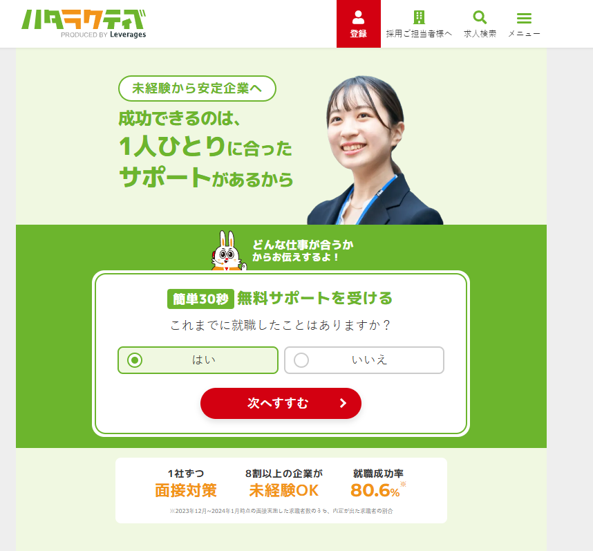 Hatteractiveはフリーター、既卒者、20代前半の転職に特化した求人サイトです。Hatteractiveは転職サイトであると同時に転職エージェントでもあるため、登録することで担当者がつき、安心して求人を探すことができます。