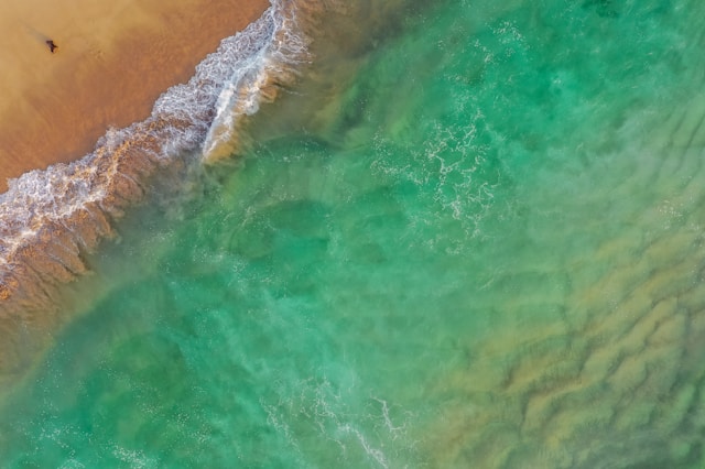 أشعة الشمس الذهبية: في المياه الساحلية الضحلة، يمكن لانعكاس الشمس في بعض الأحيان أن يخلق لمعانًا ذهبيًا على السطح. يبدو الأمر كما لو أن المحيط يرتدي نسخته الخاصة من التاج الذهبي.