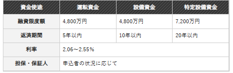 日本公庫の貸付は、融資制度によって対象者と融資限度額が変わります。