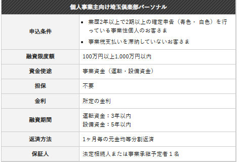 私がメインバンクとして使っている埼玉りそな銀行の事業資金サポートでは、法人と個人事業主に対して融資を行っています。