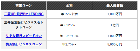 銀行のビジネスローンでも最大数千万円の融資が可能です。