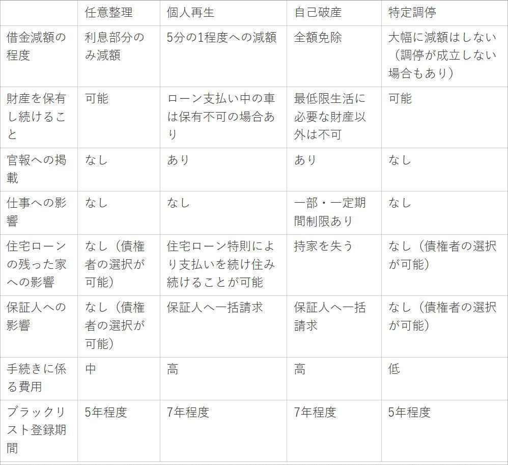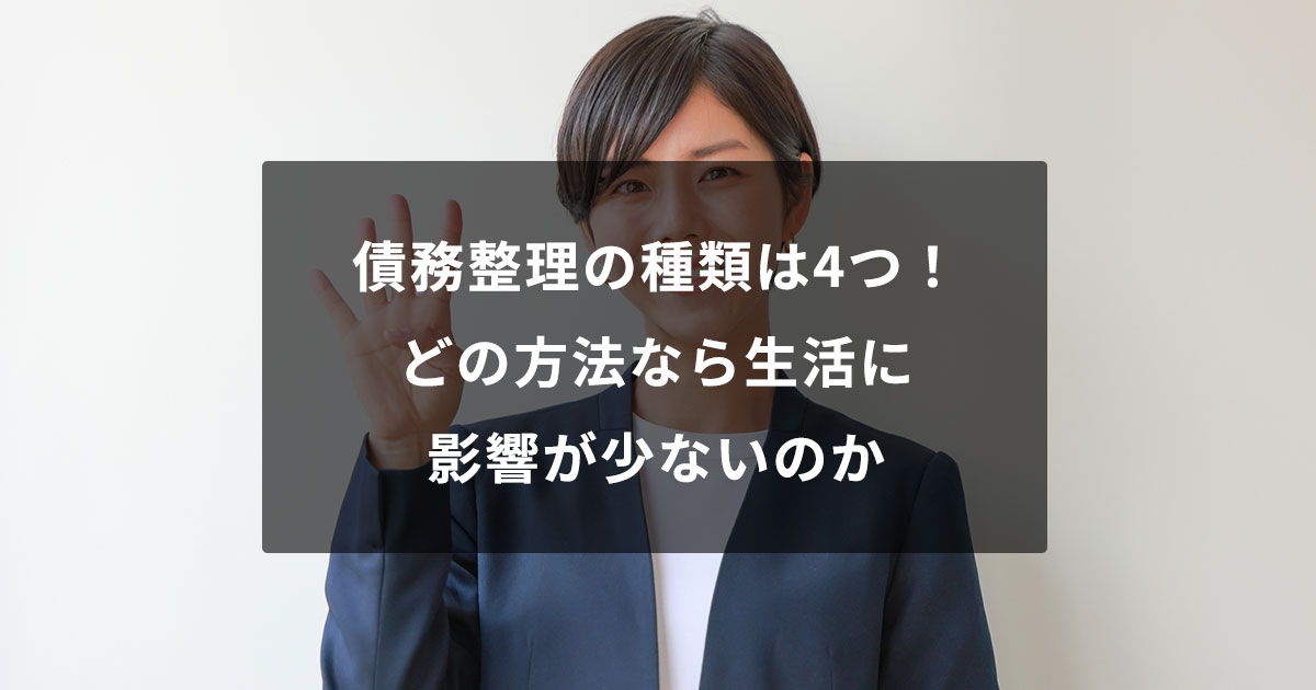 債務整理は4種類あり、住宅や車など残したい財産がある等ご状況によってどの方法を選ぶかが変わってきます。