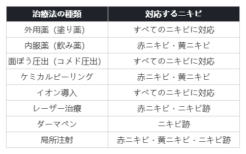 ニキビ治療は大きく6つの種類に分けられます。