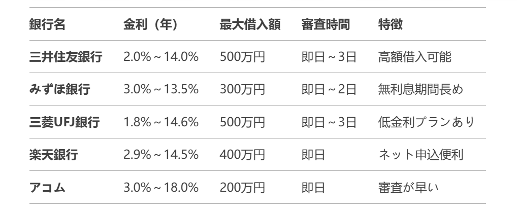 この記事では、最も借入額の多いローン商品、無利息サービス、返済方法、主要銀行の比較データ、さらに実際の利用者体験談までを徹底解説します!