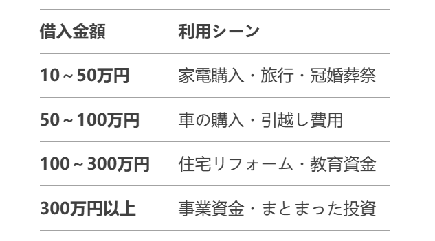 特に 30~100万円の範囲が最も多く、緊急時の資金調達として重宝されています。