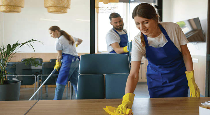 Cleaning restrooms, breakrooms, and common areas