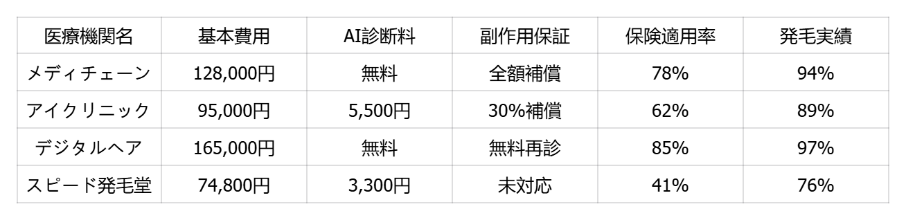 ▼ 主要クリニック治療費比較(30代・6ヶ月コース)▼