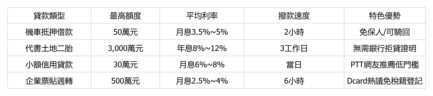 2025全台民間貸款類型比較表