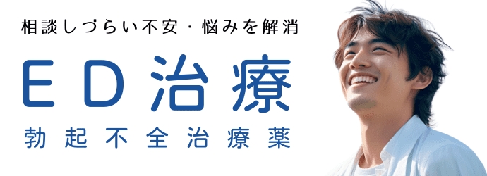 ED(Erectile Dysfunction:勃起不全)とは、「性行為に十分な勃起が得られない、または維持できない状態」を指します。日本性機能学会では「満足な性行為ができない状態が3ヶ月以上続く場合」をEDと定義しています。
