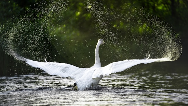 天鵝會盡一切努力保護小天鵝的安全,儘管它們在保護領地時會表現出攻擊性。當這些大鳥注意到威脅時,它們會同時扇動巨大的翅膀並發出嘶嘶聲。如果他們獲勝,他們會用最好的方式透過扇動翅膀來慶祝。