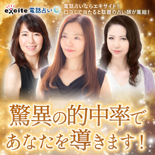 IT事業を幅広く展開する大手企業「エキサイト株式会社」が2007年から運営開始。プライバシーマークを取得している他、利便性の高いサイトシステムや良心的な料金設定、こだわり抜いた占い師陣が多くのユーザーを集め、15年以上も愛され続けてきた元祖·電話占いです。