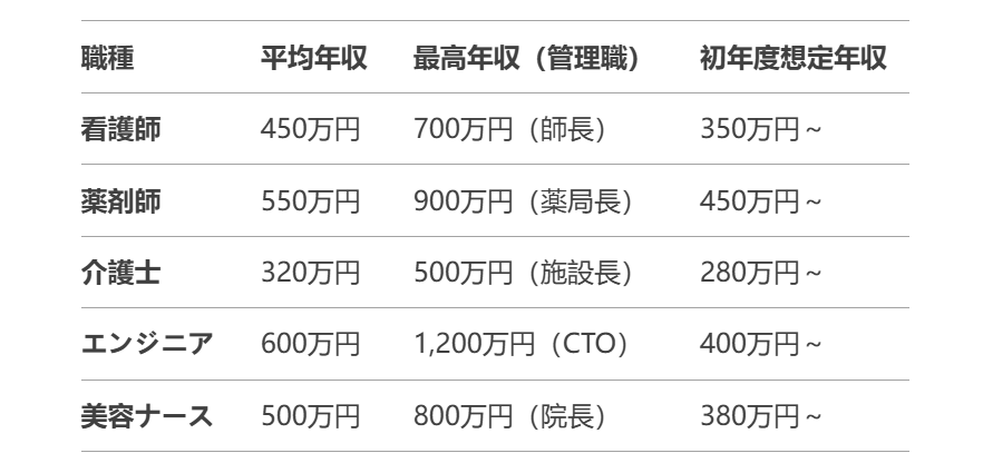 > ※記載の年収はあくまで目安です。実際の条件は勤務先・経験により異なります。