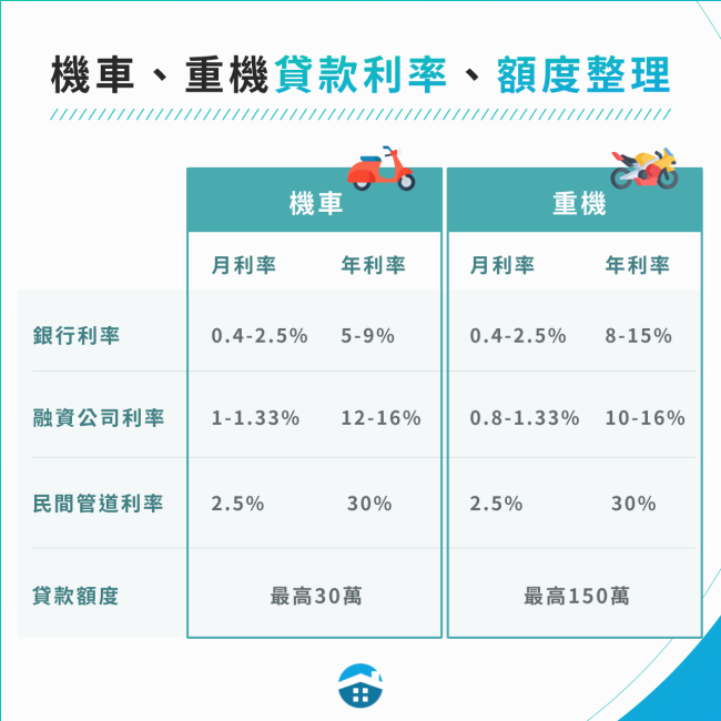 👎能貸款的金額稍低:機車比起房屋、汽車等資產價值低,核貸的金額通常不高。