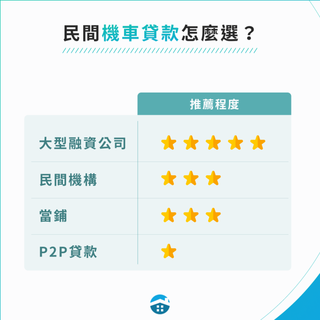 四、機車貸款管道怎麼選?比較4大民間機車貸款管道優缺點!