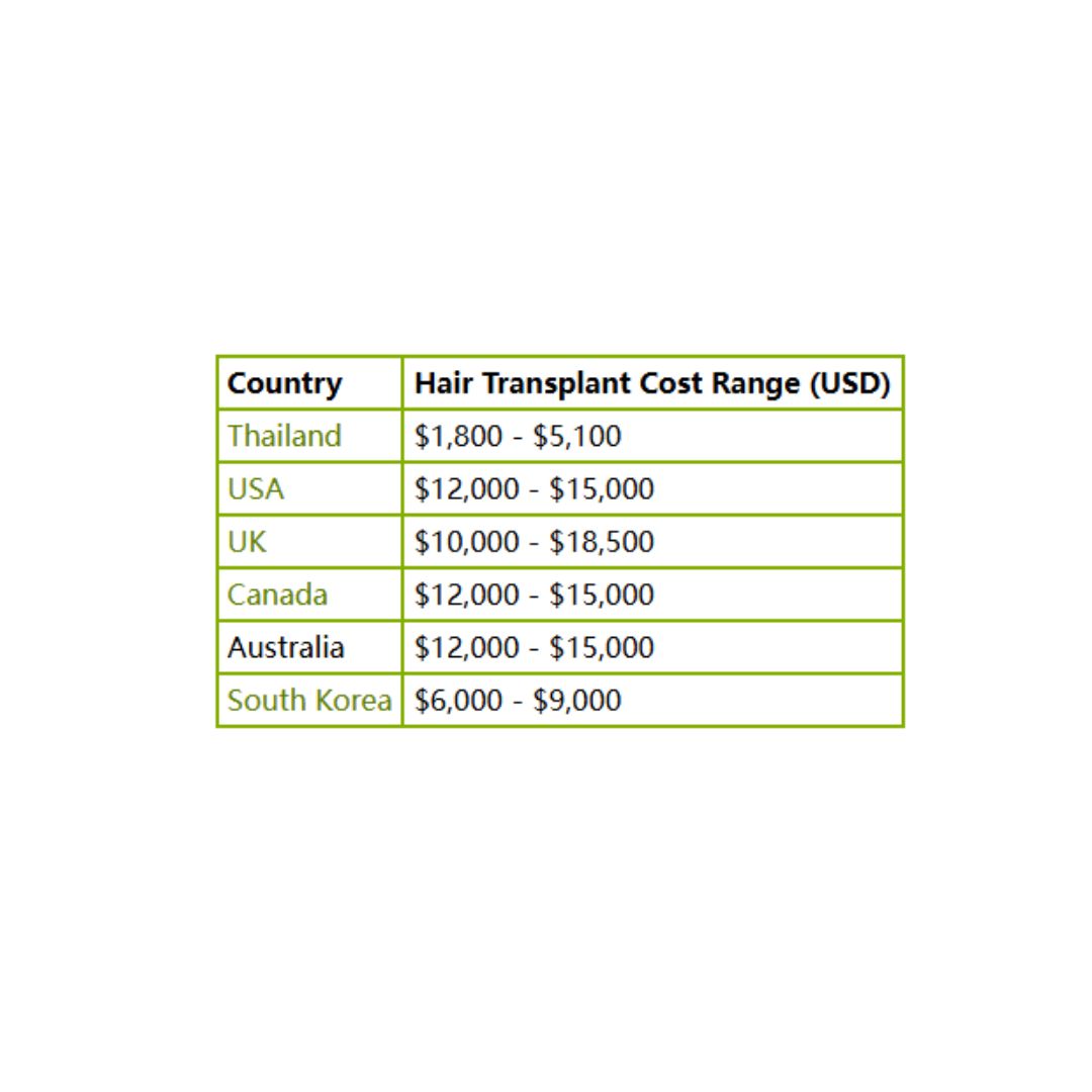Hair transplant Thailand cost is often 70-80% lower than in the USA and Canada. For example, an FUE hair transplant ranges from $3,000 to $5,000 in Thailand, compared to $12,000 to $30,000 in the USA. Patients save up to $25,000 on a single hair transplant procedure.