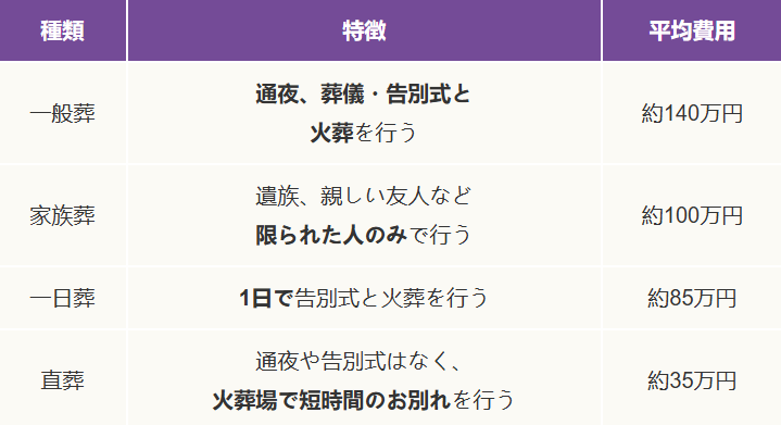 近年多い形式と、その平均費用をまとめました。